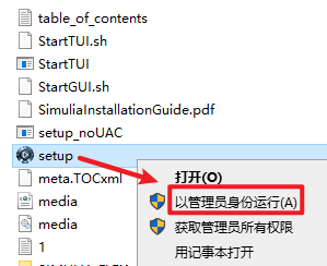 11.找到并选中“setup”右键选择“以管理员身份运行”