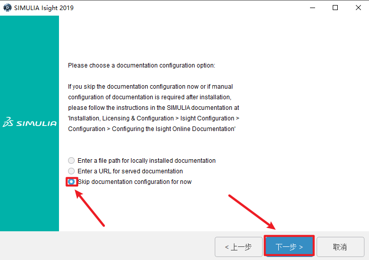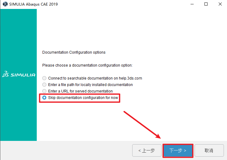 45.选择“暂时跳过文档配置”,点击“下一步”