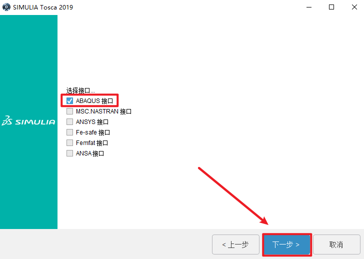47.点选择“ABAQUS接口”,点击“下一步”