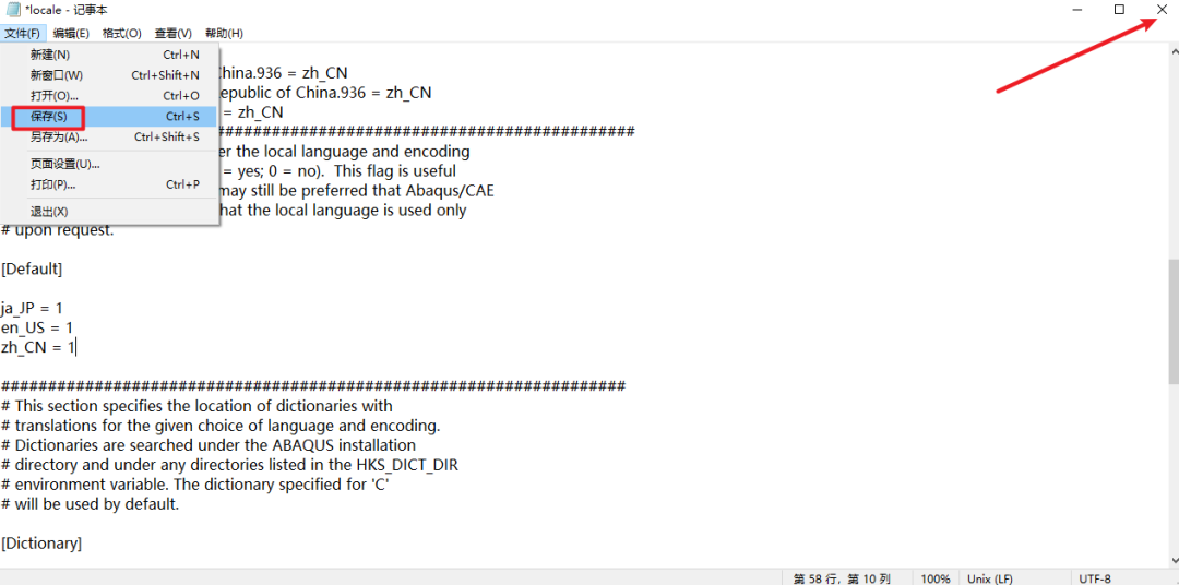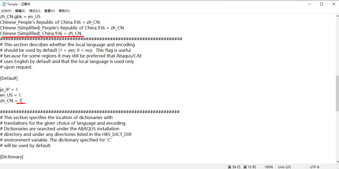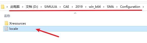 “D:\SIMULIA\EstProducts\2019\win_b64\SMA\Configuration”,双击打开”locale”文件
