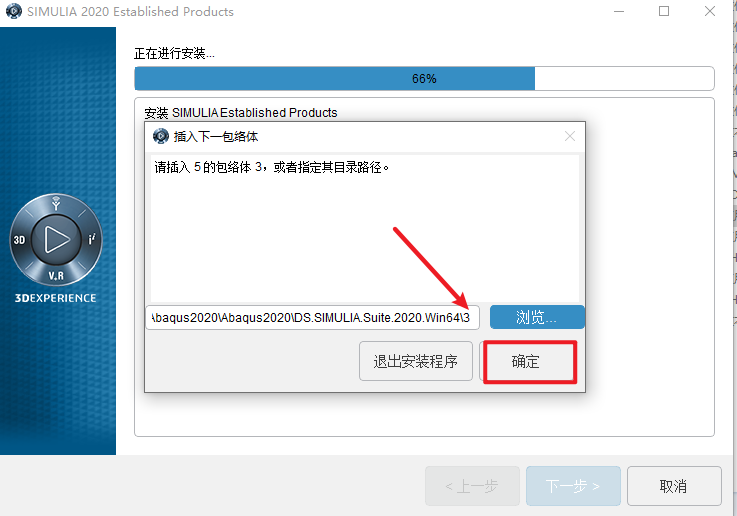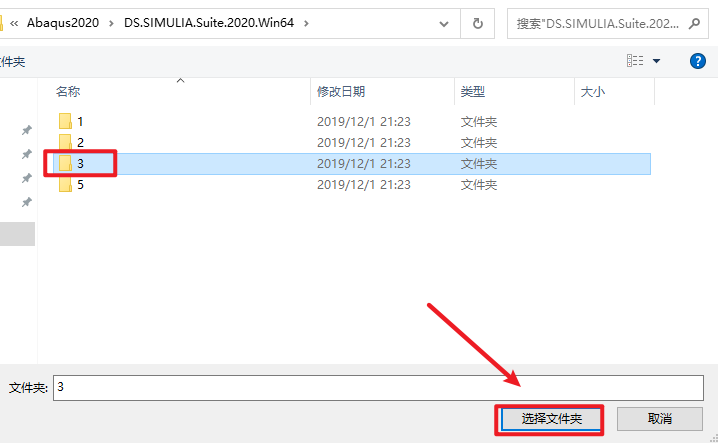 37.选择安装包“DS.SIMULIA.Suite.2020.Win64“文件夹下的“3“文件夹,点击“选择文件夹“