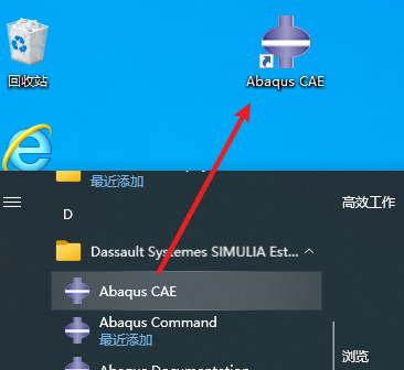 45.在开始菜单中找到”Abaqus CAE“软件,拖拽到桌面上即可创建桌面快捷方式