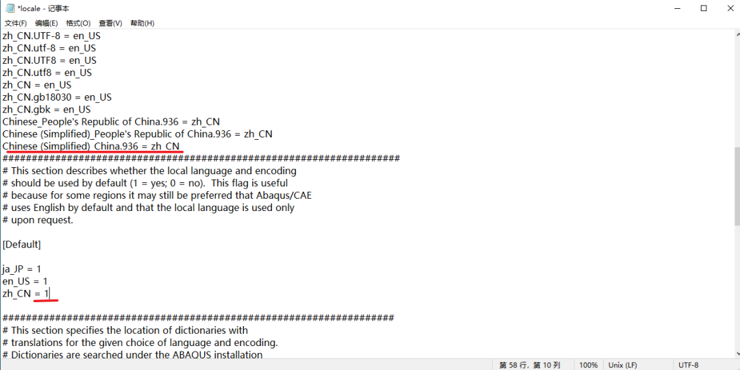 “D:\SIMULIA\EstProducts\2021\win_b64\SMA\Configuration”(文件夹,双击打开”locale.txt”文件