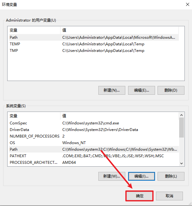 18.在系统变量处,找到“Path”,点击“编辑”