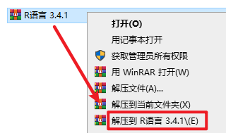 1.选中下载的压缩包,然后鼠标右键选择解压到“解压到 R语言 3.4.1”