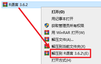 1.选中下载的压缩包,然后鼠标右键选择“解压到 R语言 3.6.2”
