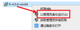 2.打开刚刚解压的文件夹,鼠标右键点击“R-4.0.4-win64”右键选择“以管理员身份运行”