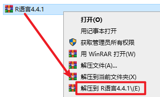 1.选中下载的压缩包,然后鼠标右键选择“解压到 R语言4.4.1”