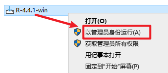 2.打开刚刚解压的文件夹,选中“R-4.4.1-win”右键选择“以管理员身份运行”
