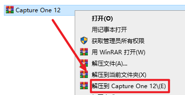 1.选中下载的压缩包,然后鼠标右键选择”解压到 Capture One 12″