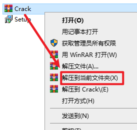 12.返回安装文件夹,选中“Crack”右键选择“解压到当前文件夹”