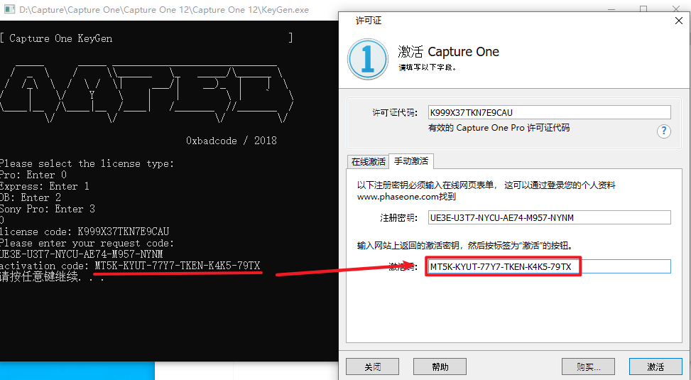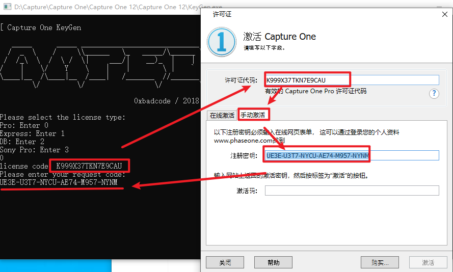 15.将“License code“后的内容复制粘贴到“激许可证代码“]处,将“注册密钥“复制粘贴到底部