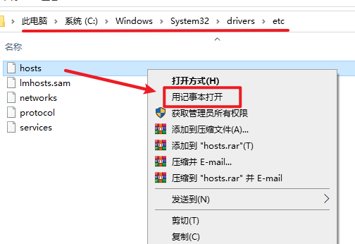 11.用记事本打开路径C:\Windows\System32\drivers\etc下的“hosts”