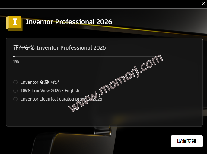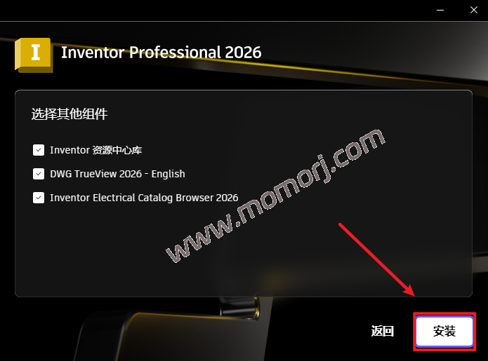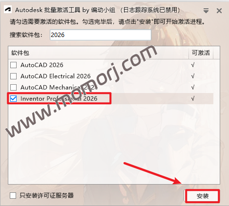 9.勾选“Inventor Professional 2026”,点击“安装”