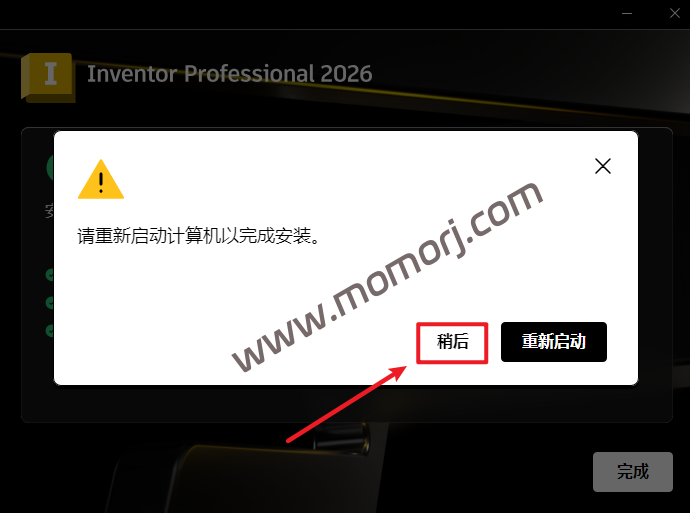 7.点击右上角的关闭(若提示重启,点击”稍后”)