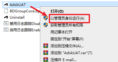 8.返回安装文件夹,依次打开“Crack——AdskUAT_1.3.2.0”文件夹,选中“AdskUAT”文件,右键选择“以管理员身份运行”