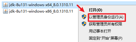 2.打开刚刚解压的文件夹,选中“jdk-8u131-windows-x64_8.0.1310.11”右键选择“以管理员身份运行”
