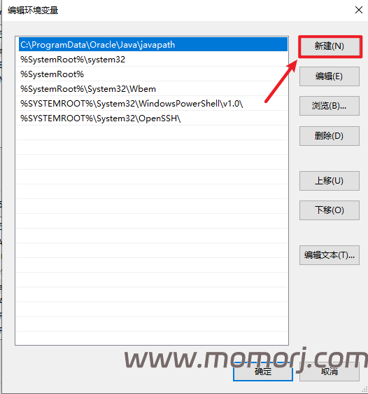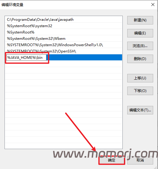 15.输入:“%JAVA_HOME%\bin“,点击“确定“