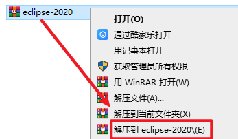1.选中下载的压缩包,然后右键选择“解压到 eclipse-2020”