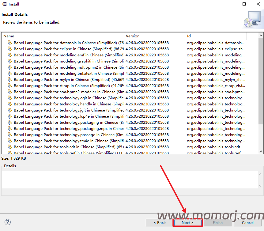 19.往下拉,找到“Babel Language Packs in Chinese (Simplified)”,并勾选上,然后点击“Next”