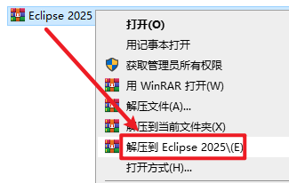 1.选中下载的压缩包,然后鼠标右键选择“解压到 Eclipse 2025”