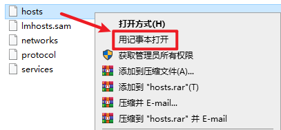 2.以记事本方式打开”hosts”