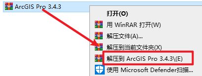 1.选中下载的压缩包,然后鼠标右键选择解压到“ArcGIS Pro 3.4.3”