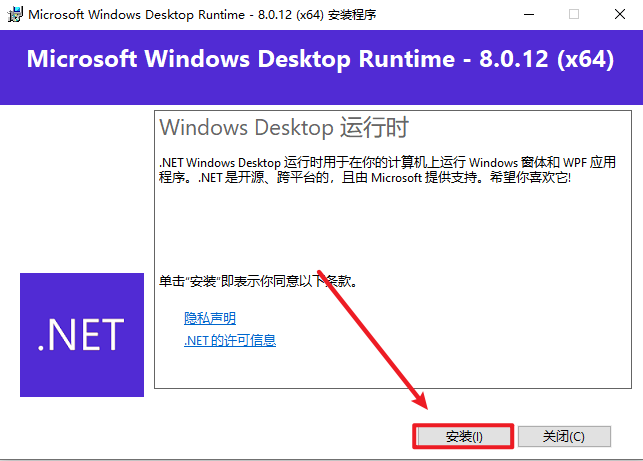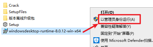 2.打开刚刚解压的文件夹,选中“windowsdesktop-runtime-8.0.12-win-x64”右键选择“以管理员身份运行”