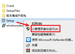 5.返回安装文件夹,选中“Setup”右键选择“以管理员身份运行”