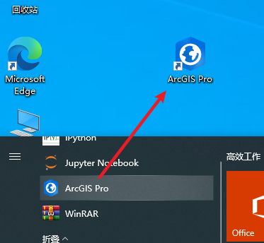 23.在开始菜单中找到“ArcGIS Pro“软件,拖拽到桌面上即可创建桌面快捷方式