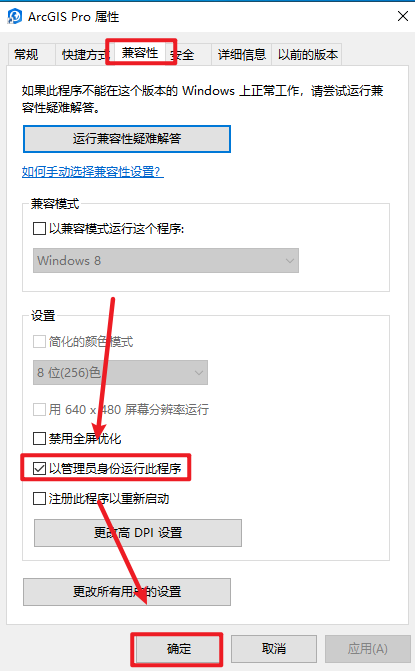 27.点击“兼容性”,勾选“以管理员身份运行此程序”,点击“确定”