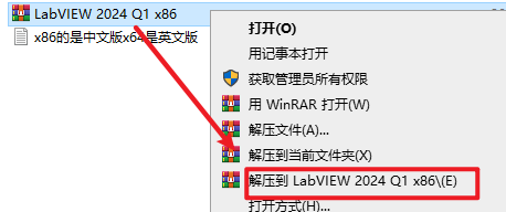 1.选中下载的压缩包,然后右键选择解压到“LabVIEW 2024 Q1 x86”