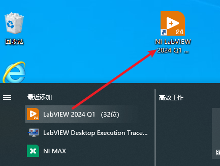 15.在开始菜单找到“IN labvIEW 2024“软件,拖拽到桌面上即可创建桌面快捷方式