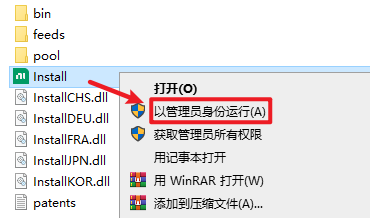 2.打开刚刚解压的文件夹,选中“Install”右键选择“以管理员身份运行”
