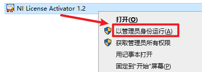 15.返回安装文件夹,双击打开“Crack”文件夹,选中“NI License Activator1.2“文件,右键选择“以管理员身份运行”