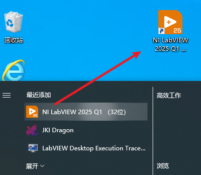 18.在开始菜单栏,找到“IN labvIEW 2025“软件,拖拽到桌面上即可创建桌面快捷方式