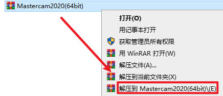 1.选中下载的压缩包,然后右键选择解压到”Mastercam2020(64bit)”