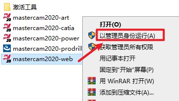 2.打开刚刚解压的文件夹,找到并选中“mastercam2020-web”,右键选择“以管理员身份运行”
