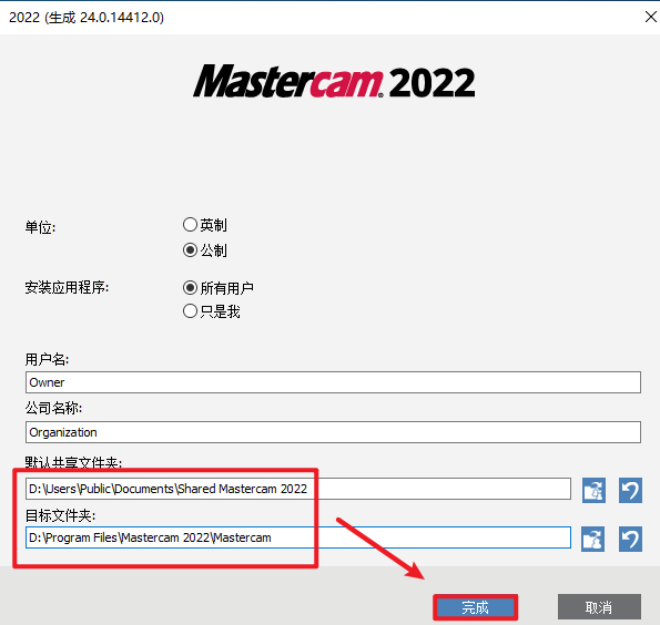 6.选择软件安装路径,安装路径不要出现中文,点击”完成“