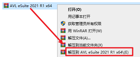 1.选中下载的压缩包,然后鼠标右键选择解压到”AVL eSuite 2021 R1 x64″