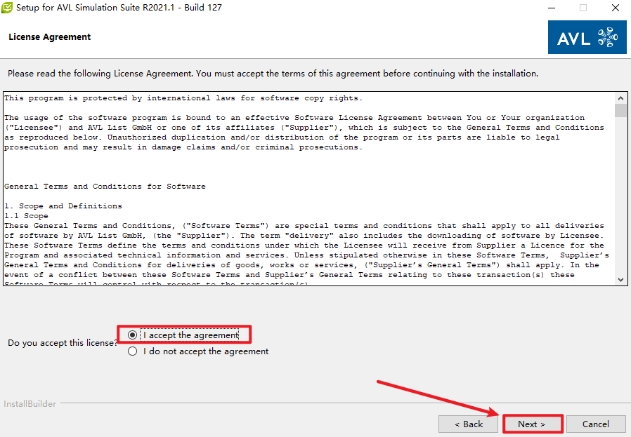 15.点选“I accept the agreement”,点击“Next”