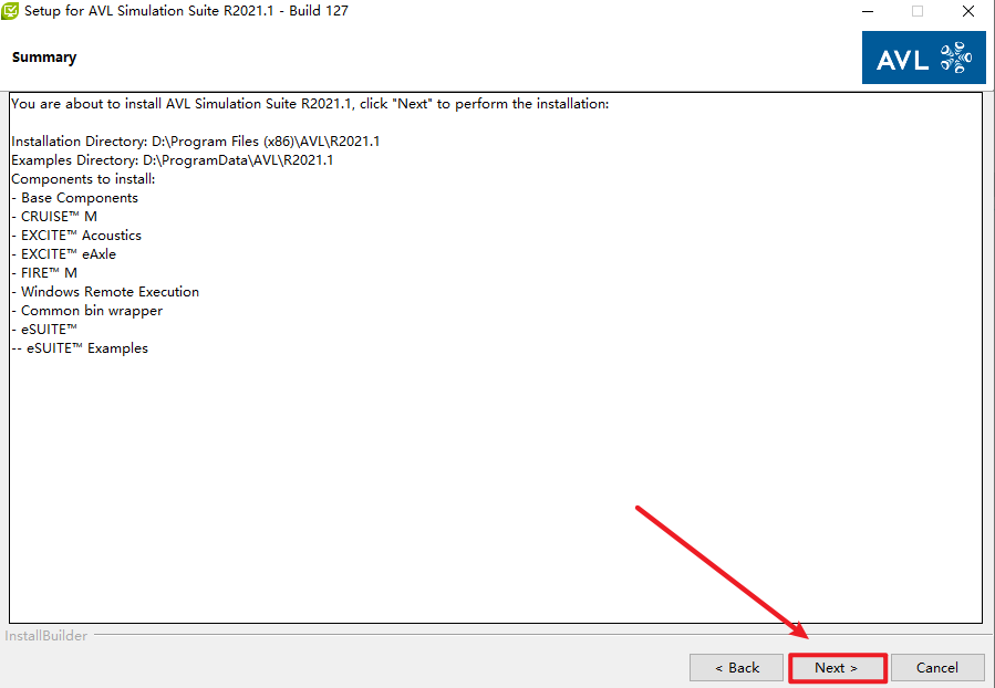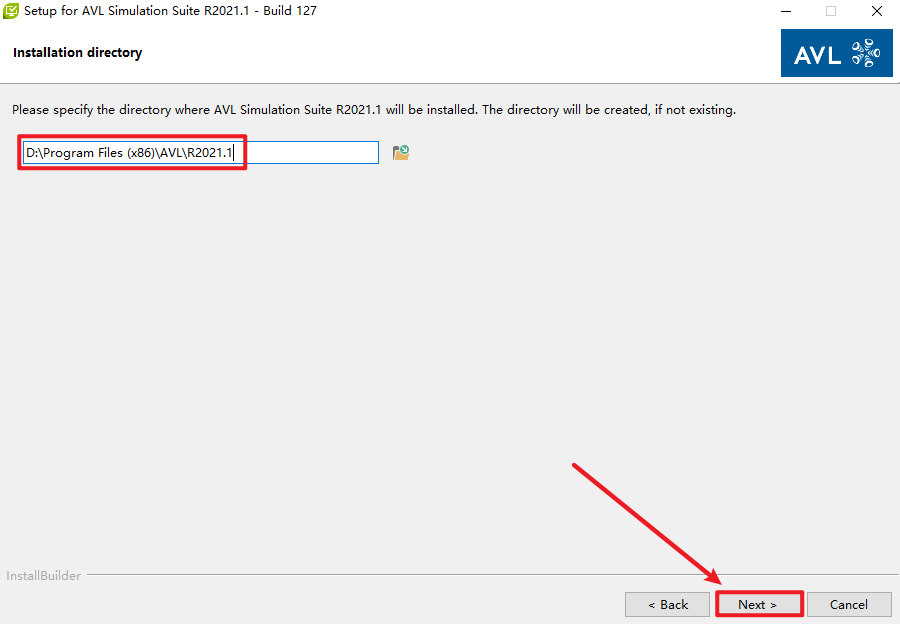16.选择软件安装路径,安装路径不能有中文,只改AVL之前的路径,AVL之后的路径尽量不要更改,点击“Next”