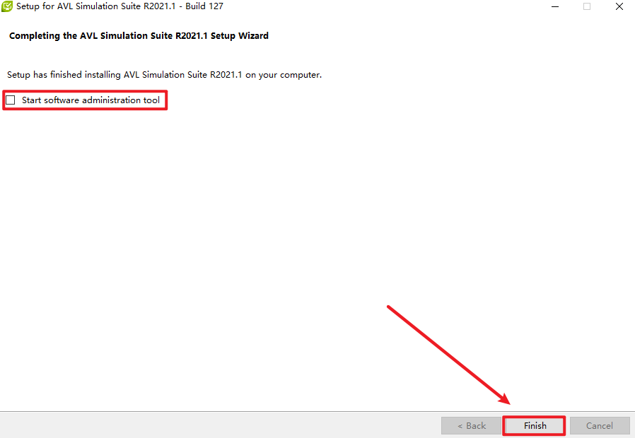 22.取消勾选“Start software administration tool”,点击“Finish”