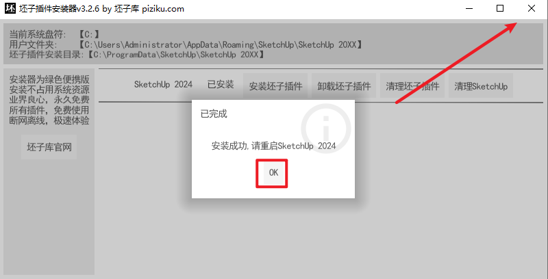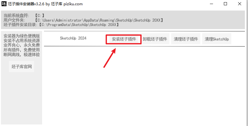 3.根据SketchUp(草图大师)版本进行选择,点击“安装坏子插件”