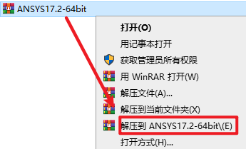 1.选中下载的压缩包,然后右键选择解压到”ANSYS17.2-64bit”