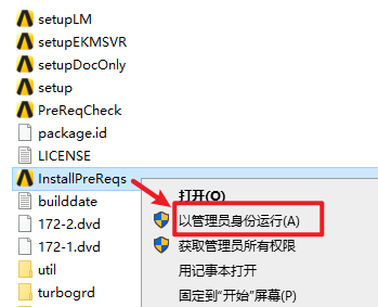 5.选中“InstallPreReqsexe”右键选择“以管理员身份运行”