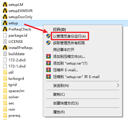 7.选中“setup”右键选择“以管理员身份运行”