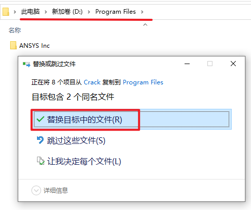21.选择“替换目标中的文件”