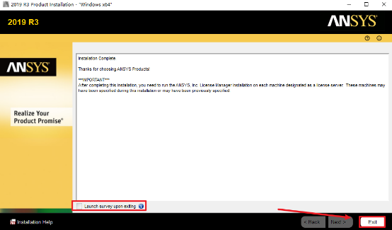 13.取消勾选“Launch survey upon exiting”,点击“Exit”