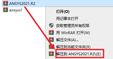 1.选中下载的压缩包,然后右键选择解压到”ANSYS2021.R2″